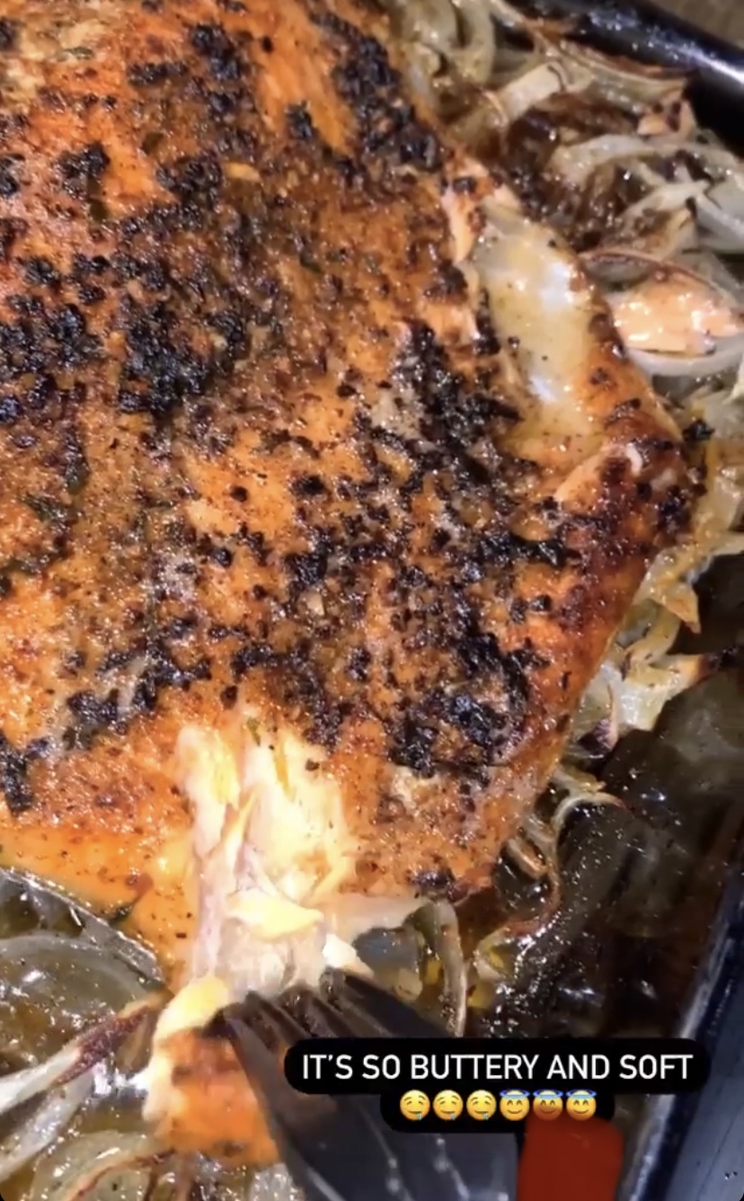- Place the trout filet in the center on top of the bed of onions. Season trout with salt, pepper, Old Bay, paprika, Mrs. Dash, and then squeeze juice from half a lemon over the fish until covered. Seal with foil. Cook for 15-20 minutes.