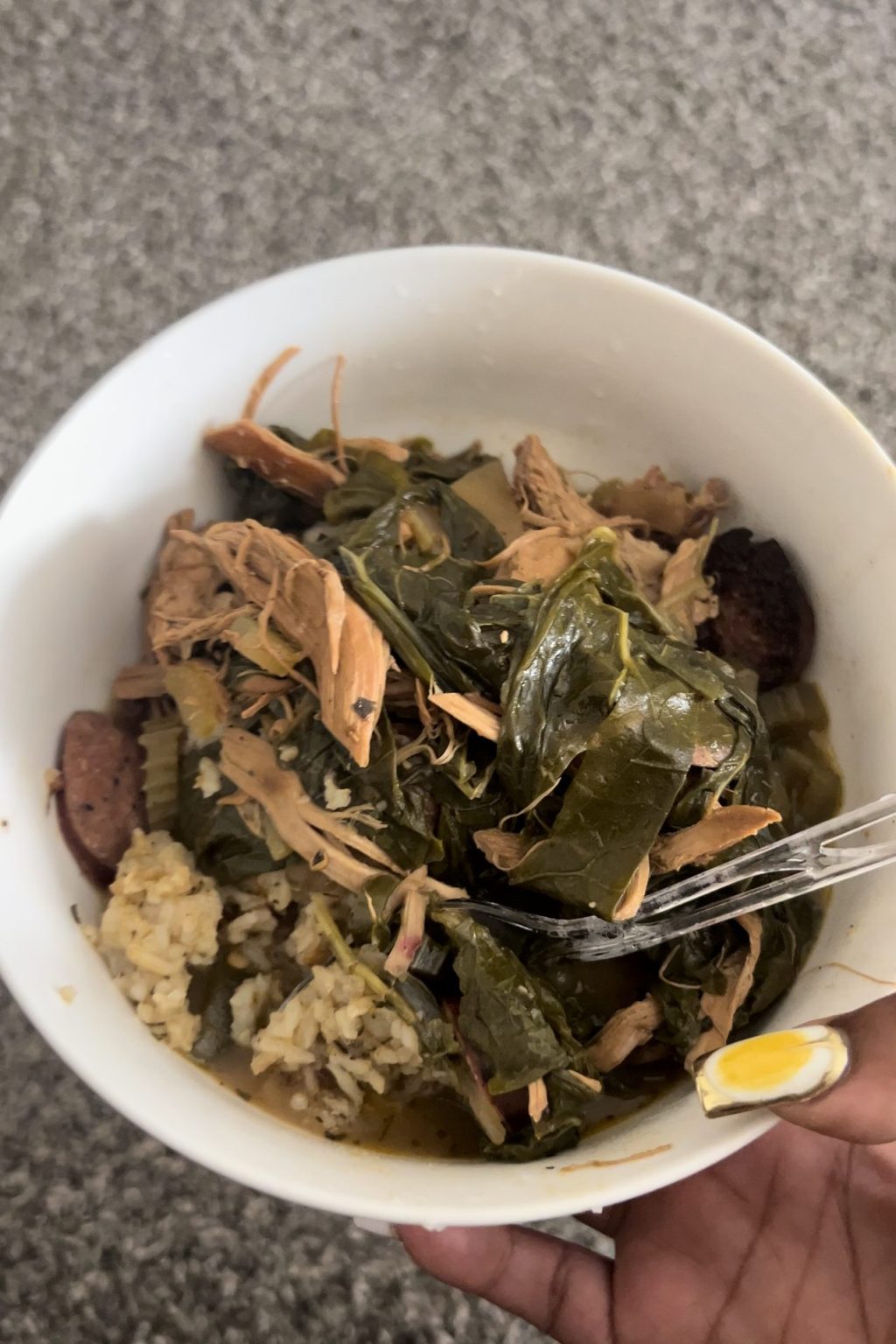 So if you love gumbo and greens, you have to try this! If we cut right to the chase, you are simply removing the okra in a traditional gumbo recipe and adding your choice of greens! I prefer collard greens, but you can use several options I outlined in the ingredients section.