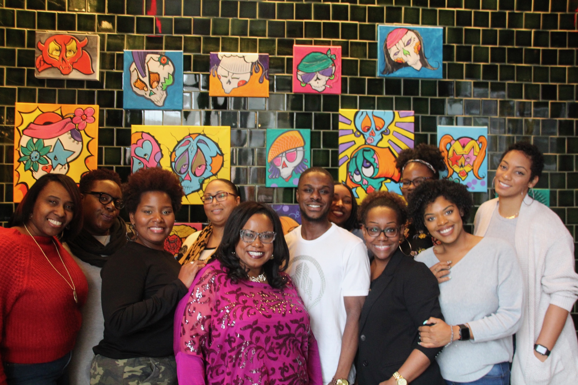 Since launching my blog, I’ve been thinking of ways to host events in 2019. So I came up with the brilliant idea to host a brunch event, A New Year Mingle Brunch. I hosted at Mexican Bar Company (MBC), located in The District of the Shops at Willow Bend. It’s a dining area with chef-driven restaurants- some featuring second-story terraces, an outdoor plaza and has included valet drop-off near the new mall entrance. And it’s exactly where you can find MBC. MBC offers the full scope of Mexican cuisine; handmade corn tortilla tacos, freshly prepared ceviches, guacamoles, salsas, and an exceptional selection of regional dishes. Fully complementing the Mexican menu, cocktails incorporate a comprehensive beverage selection from all regions of Mexico, Texas, and beyond. The open space mix of dining, lounge, bar, and a large patio has a casual contemporary meets urban look featuring vibrant original murals amplifying the festive atmosphere. And speaking of atmosphere, when you walk in there’s an inviting emerald green, bricked room with portraits of cute, cool skulls hanging on the wall. Definitely paying homage to El Dia de los Muertos. I stood looking at all of them before I realized I should be setting up my table and not gawking at skulls.