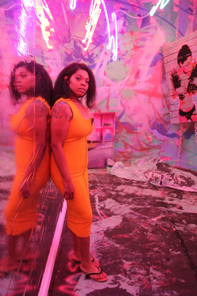 Walking into an outside dining area, located in the heart of Crescent Complex, I saw rows and rows of string lights hanging above me. Reminiscent of a starry-night sky, the mood instantly becomes romantic. I see an awesome place for a date night. But the area around the patio was busy too. I kept walking down the circular setting to view the retail shops, banks, spa and fitness center and restaurants like Nobu’s kitchen, which had a delectable aroma infiltrating the air. I, DeQuilla Gennay, certainly couldn’t be getting ready to see a creative and artistic museum. I snapped back in to reality and spotted a strip that leads you down to Hotel Crescent Court (please go inside and marvel at it’s beauty). I absolutely went inside the hotel before *slaps head. On my way there, I did see this strange carnival looking booth, but my eyes were fascinated with the plants outside the hotel. So, if you choose to skip the shaggy, papered carnival booth that looks misplaced, I wouldn’t judge you. Live yo best life. However, there is what appears to be a carnival booth! An attendant, or two, might be around to help in case you’re unsure. You’ve made it to Psychedelic Robot (PR) and you’ll know your experience has started!