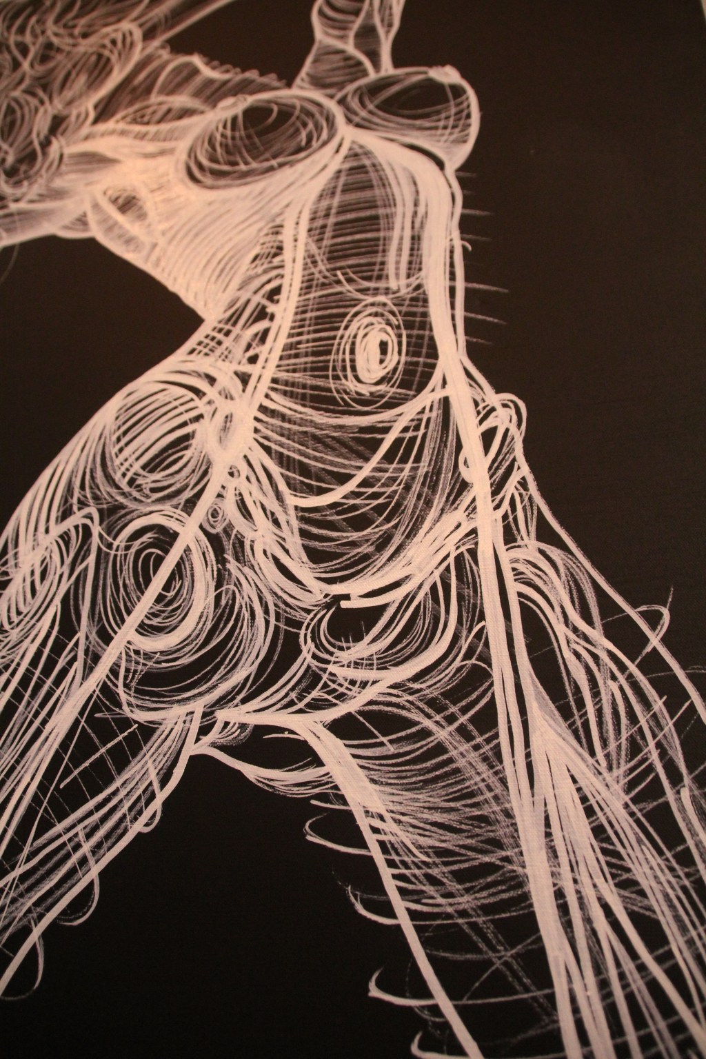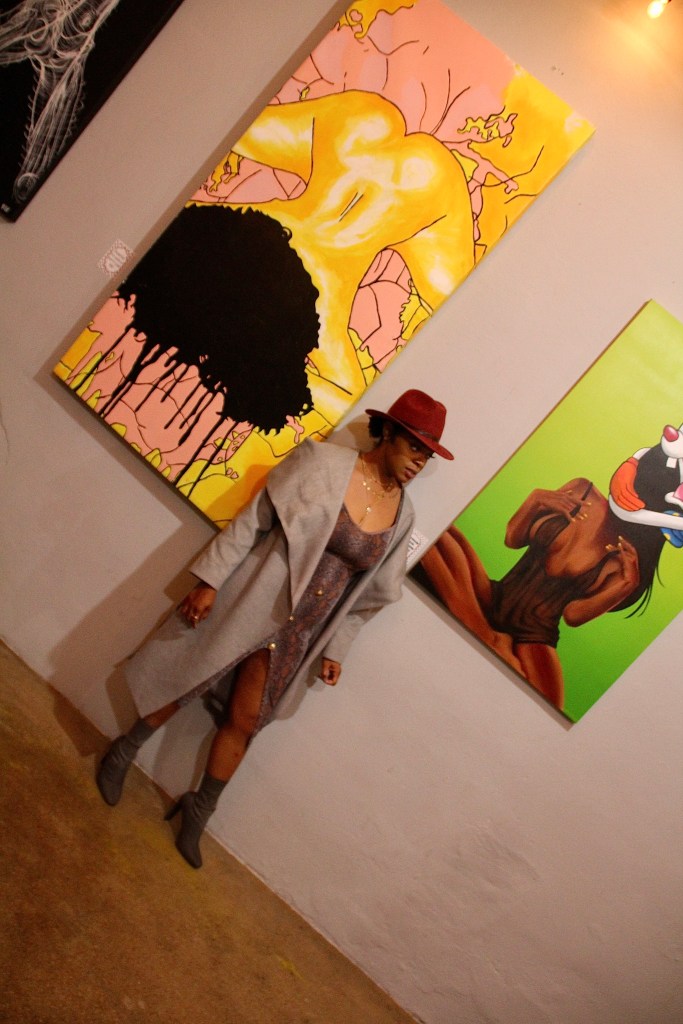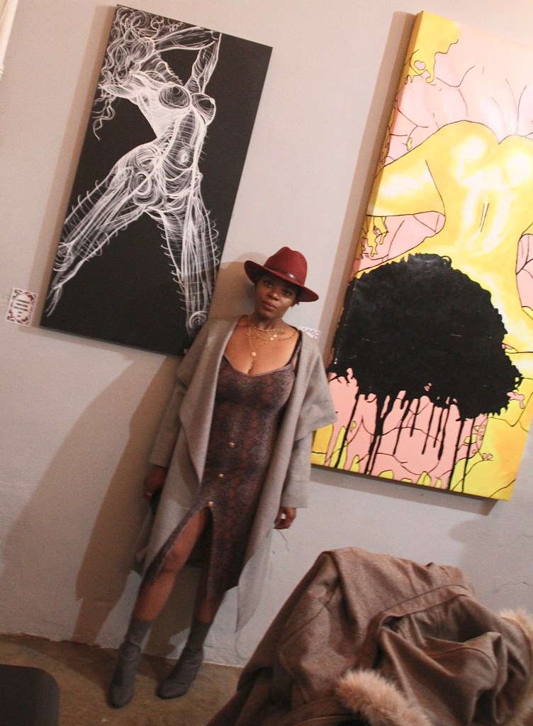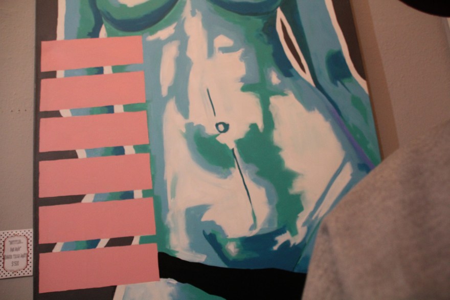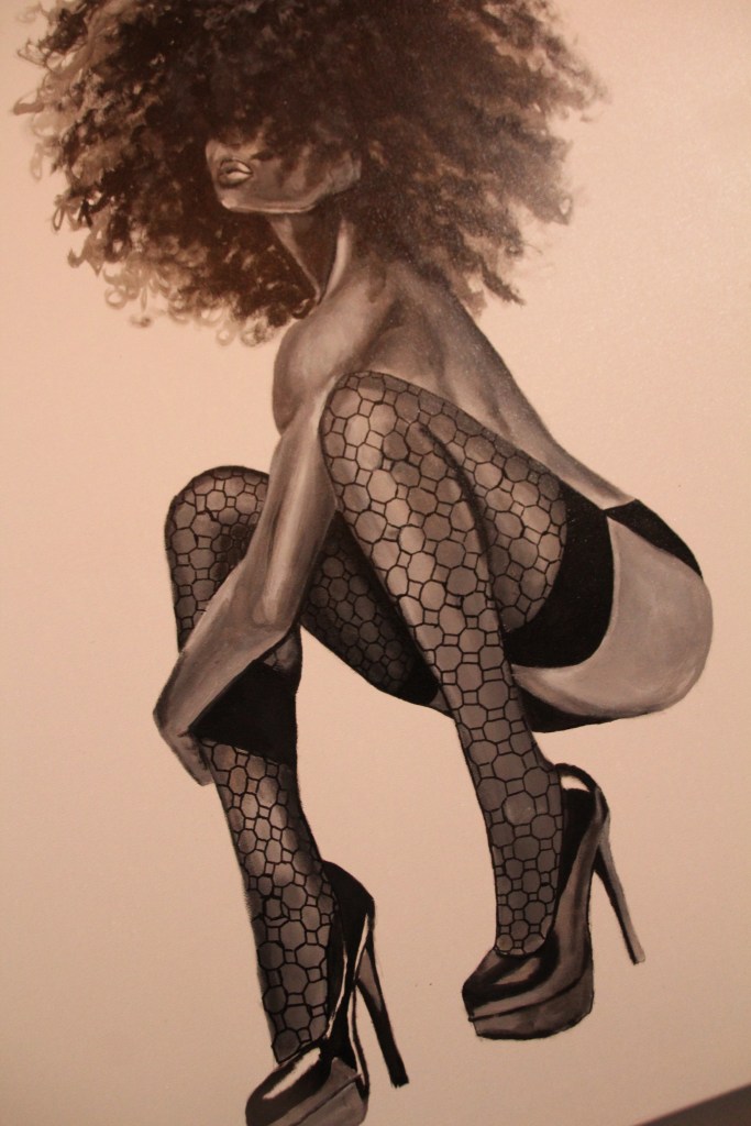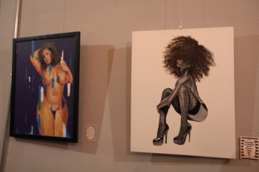On a cold, wet Friday night I struggled to find parking on the outskirts of Deep Ellum near For the Culture Studios- John’s studio and space for the exhibit. I invited a few friends and we were enticed as soon as we walked through the door! Hang along the walls of the studio were art pieces. Each piece depicted women in their naked sexuality. That’s right… titties, breasts, vaginas, thighs, smalls of backs and bare skin were all around. This exhibit was about celebrating the skin you’re in; the nude human figure. The exhibit showed an introspective look at the human figure from a contemporary perspective. It will feature artist from all over the country like Kylie Lost, Terrell Weathersby, Trey Wilder, Victoria Holmes, Carol Devreaux, Scott Williams, Raquel Hynson and Joe Thomas.